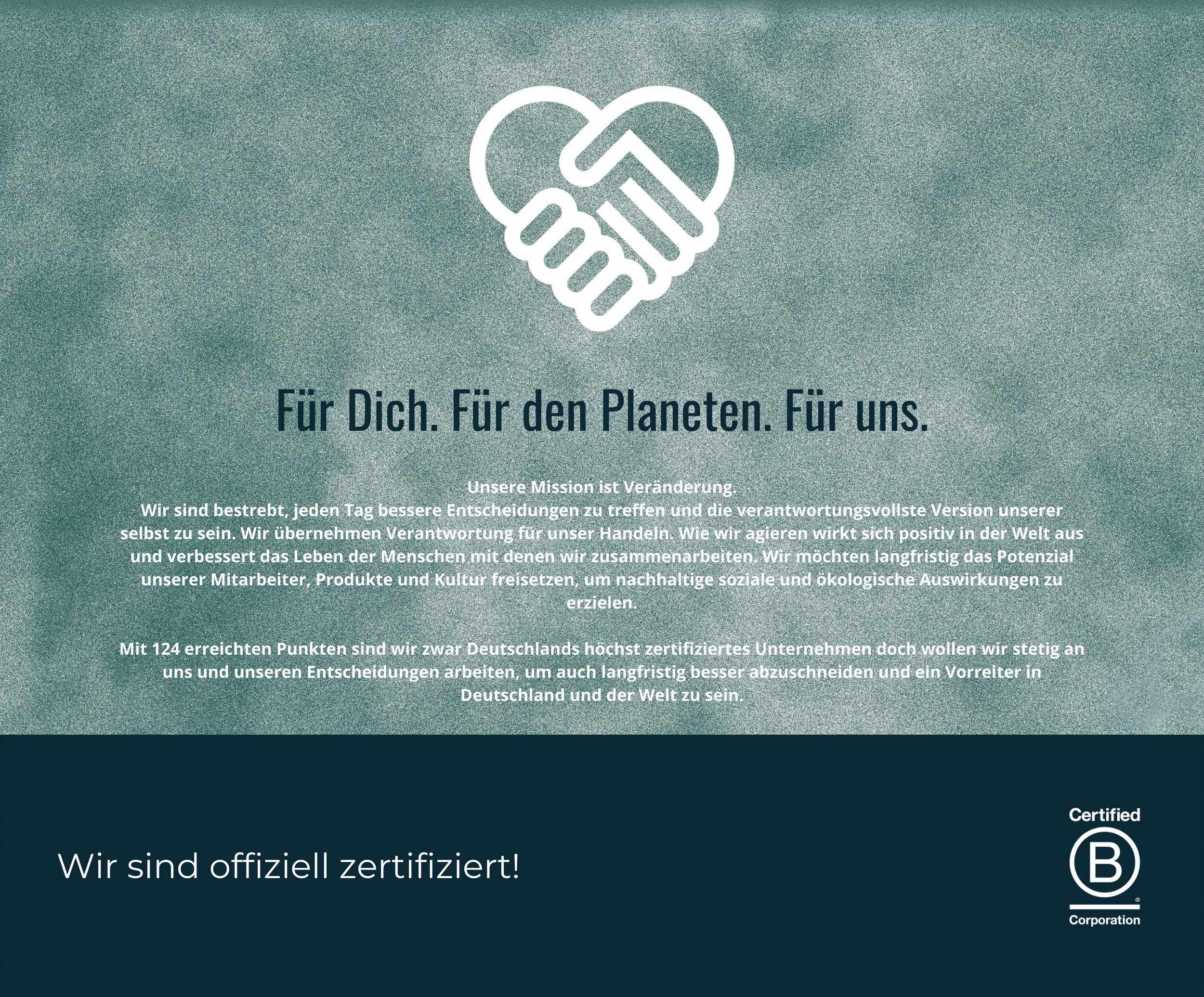 We are working on it. We are the highest-rated B Corp company in all of Germany!