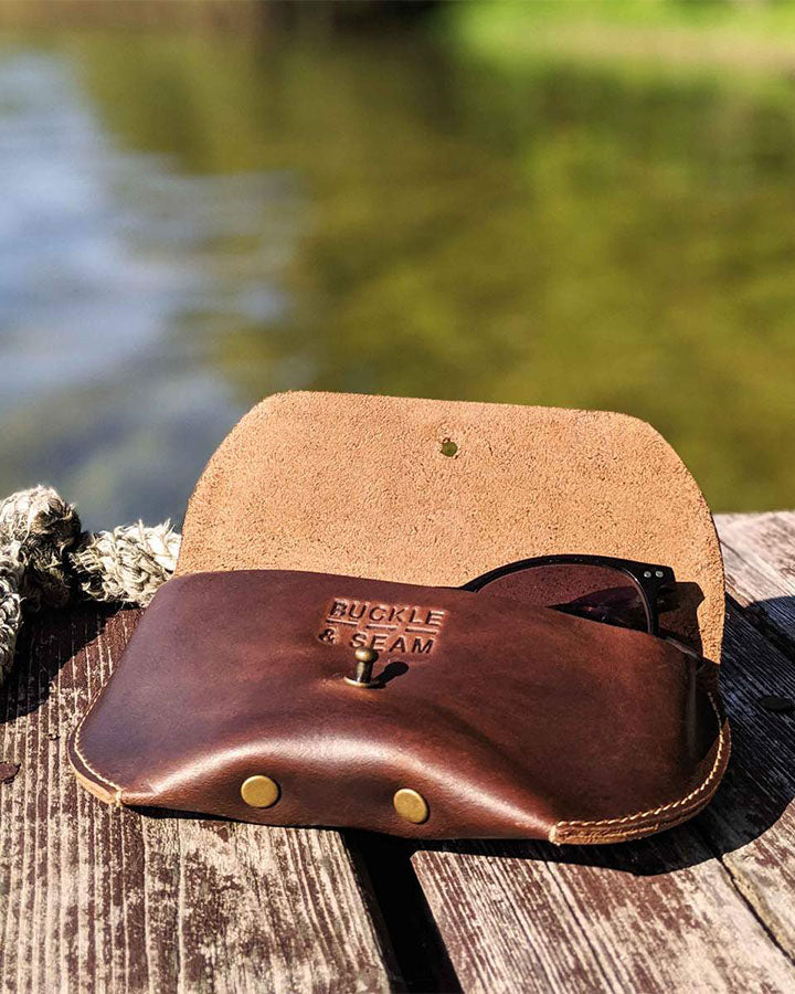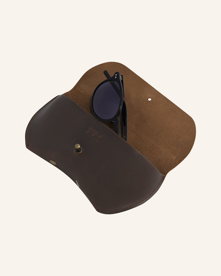 The Arizona glasses case impresses with its unusual design. Natural, rich brown leather combined with light-colored stitching and accessories. What makes the leather spectacle case stand out is the simple but extremely effective clasp. This means you don't have to worry about your glasses finding their way out of the case unnoticed. You can add a personal engraving to the Buckle & Seam embossing above the clasp. How about your own initials, for example? Or you could give the glasses case as a gift to a great person, giving you the opportunity to create an extraordinary present.